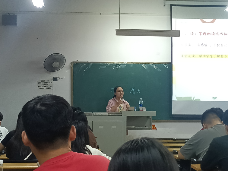 其次,孙文静老师展开第二个话题的讨论:一位合格的语文老师应具备哪些基本功。第一,学会倾听。倾听是一门艺术。第二,掌握教学语言。教师的语言修养在极大程度上决定着学生在课堂上脑力劳动的效率,因此孙文静老师指出,教师的语言一定要规范准确、生动形象。第三,掌握朗读技巧和方法。作为教师,需要有节奏、有感情的朗读,不仅自己会读,还要指导学生。第四,写好字,写好文。孙文静老师建议,教师要擅长写论文、随笔、杂感、散文等,也要写好下水作文,同时,写好评语也是关键一步。孙文静老师从听、说、读、写四个方面对语文老师应具备的基本功进行了详细阐述,从而希望在座的各位教师实习生不断提升自身学习能力。