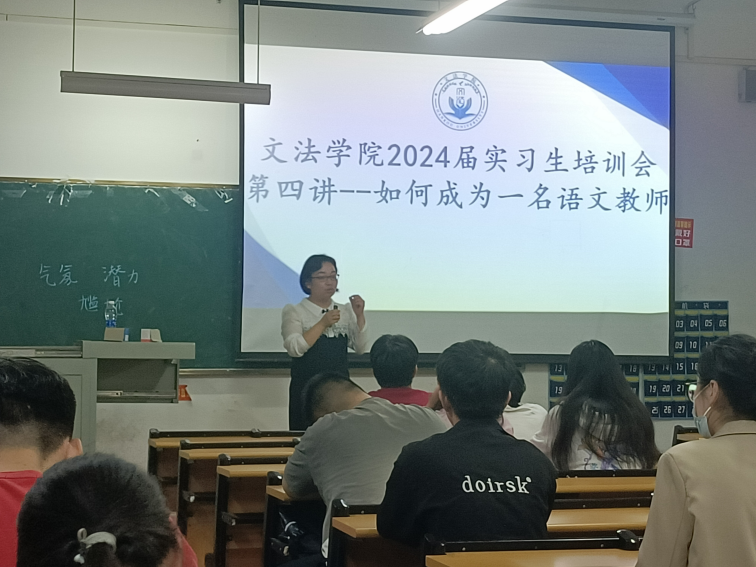 为了提升文法学院汉语言文学专业实习生的职业素养和专业能力,使其尽快掌握教育教学规律,创新教学思维,增强教育教学技能,更好地适应学校工作,我院于2023年11月2日下午6点30在二教2217教室举行了文法学院2024届实习生培训会,主题是如何成为一名语文教师。培训会由孙文静老师进行主讲,文法学院党总支书记杜占红主持,全体2024届教师岗实习生参与。