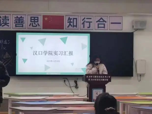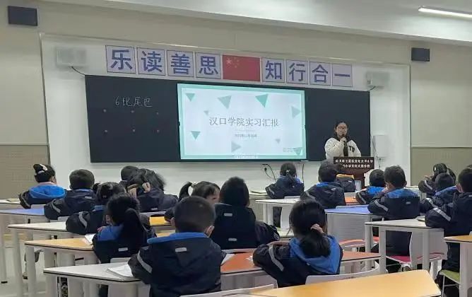 2023年11月30日早8点,我院汉语言文学专业在江夏区文化大道小学实习点的实习生们的实习汇报会在江夏区文化大道小学圆满举行。汉口学院文法学院景遐东院长,杨东院长,吴沁老师以及喻振刚,晏琪琪两位辅导员到场参加汇报。文化大道小学柯校长,熊校长,杨丹主任,张芬主任,各位实习生指导教师参加汇报。汉口学院全体实习生以及武汉城市职业学院全体实习生参加汇报。