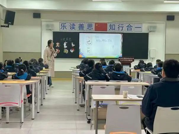 首先进行课堂展示的是实习生张一迪,与一年级六班同学展示课堂:第6课《比尾巴》。指导教师:文化大道小学孙传芹老师。