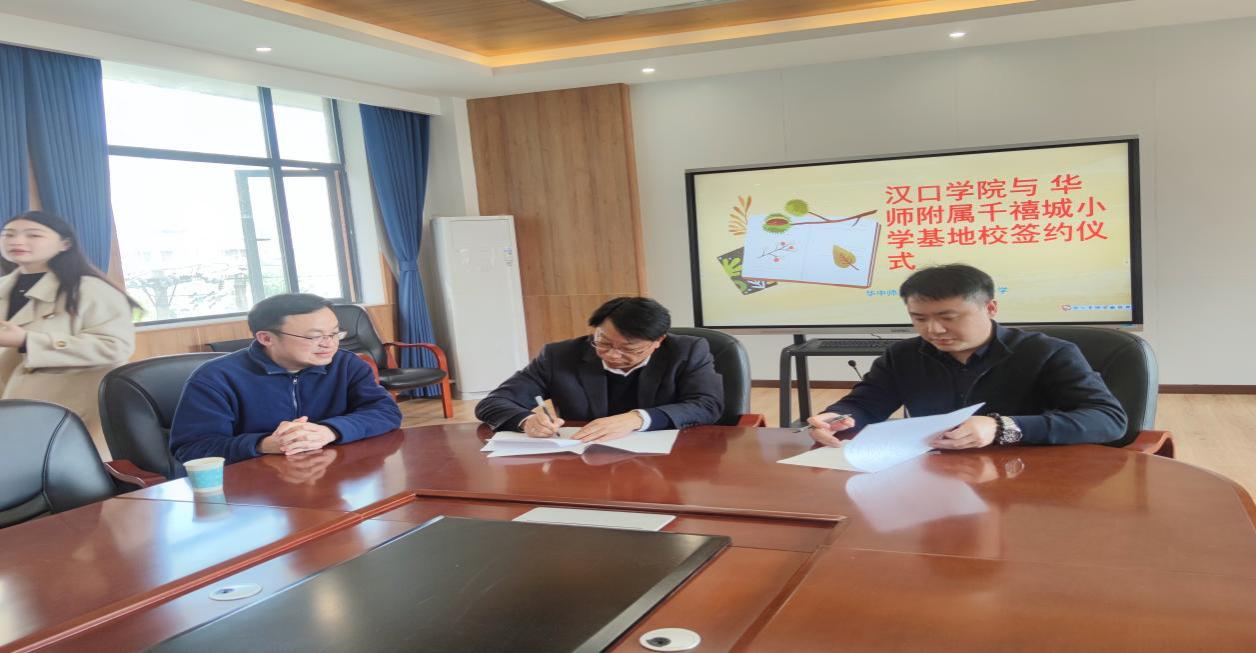 3月20日下午,我院景遐东院长、杜占红书记、杨东副院长一行3人,赴硚口区华中师范大学附属千禧城小学参加汉口学院汉语言文学专业教学实习基地签字仪式。华师大附小刘峥校长、冯莉副校长以及语文老师孙佳妮出席签字仪式