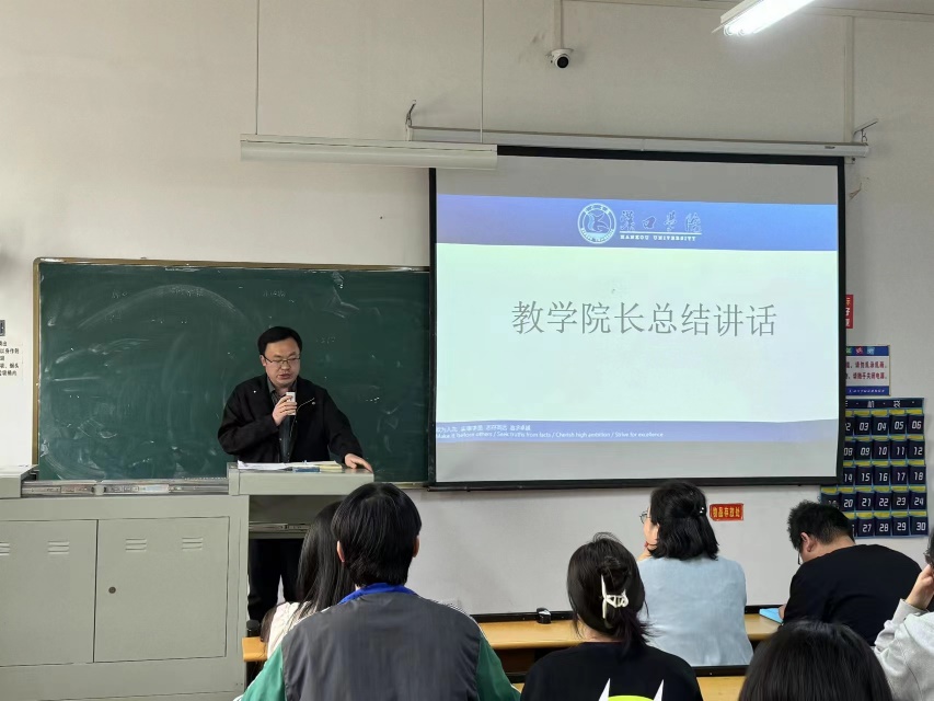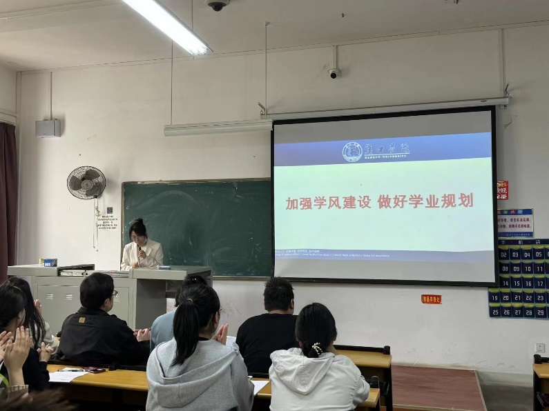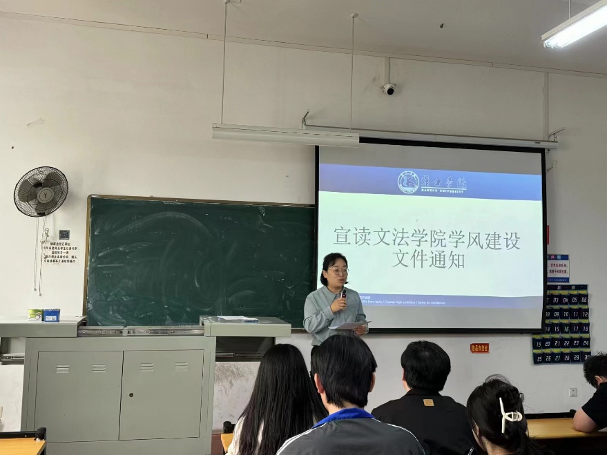 为进一步加强学风建设,引导我院学生做好学业规划。汉口学院文法学院于2024年4月10日中午在二教2213教室召开了学风建设主题会议。到场的领导老师有文法学院党总支书记杜占红、文法学院教学副院长杨东教授、文法学院现当代文学教研室主任侯令琳博士、文法学院学工办主任欧阳嘉斌老师。会议由辅导员刘琪老师主持,文法学院21级、22级、23级各班班长与学委到场参会。