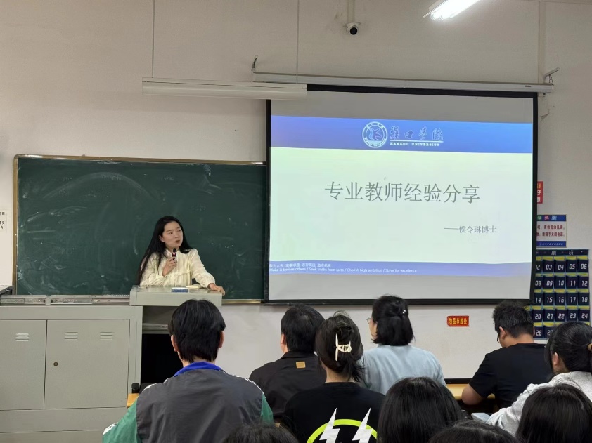 会议第四项,由文法学院现当代文学教研室主任侯令琳博士进行专业教师经验分享。她分别从学习态度和学习方法两个方面进行分享。对于学习态度,侯老师强调:“态度决定一切。”同学们上课一定要认真听讲,课后进行复习、认真备考。另外,同学们要寻找各种渠道,探索学习方法。对于学习方法,她要求从三种方式建立正确的学习方法。第一,注重阅读。我们应当把阅读当作一生挚业,不仅要阅读专业必读科目,还应当循序渐进地涉猎其他领域的书籍。在阅读时,我们可以通过边读边记、做思维导图、写评论、转述输出等方面加强阅读效率。第二,注重自主探究式学习。我们应当主动地研究学习方法、寻找学习乐趣。第三,注重实践。小到课堂展示,大到竞赛、兼职都是实践的方式,我们可以通过实践补齐短板、自我完善。