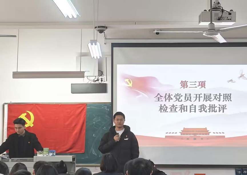 随后,全体党员在邢皓源书记的带领下开展对照检查和自我批评,同时支部的老师们从党员的发言中总结出普遍的问题,他们指出,同志们党建活动参与积极性不够高、学习和工作协调度不够好、党建活动缺乏创新能力等,最后学生党员们针对各自问题也提出了相应的解决方法,做出长远规划。