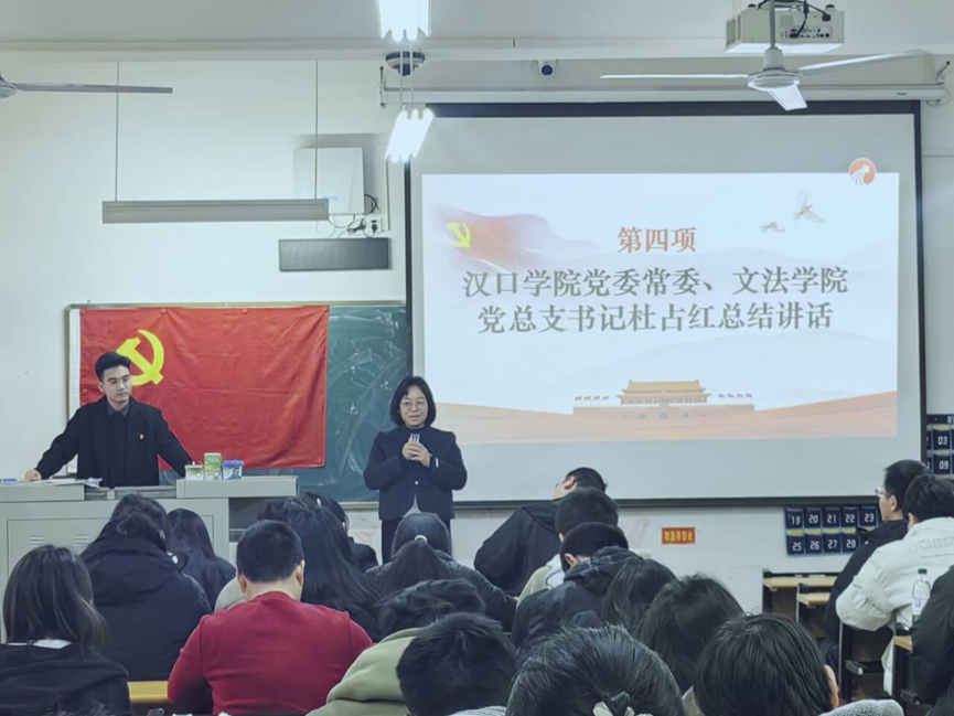 为深入学习贯彻习近平新时代中国特色社会主义思想,全面落实党的二十届三中全会精神,文法学院学生第一、第二党支部于2月21日中午,在二教2218教室召开2024年度民主生活会。参加了此次会议的是汉口学院党委常委、文法学院党总支书记杜占红,文法学院党总支组织员、学生第一党支部书记邢皓源,组织委员刘琪,纪检委员饶振,文法学院学生第二党支部书记欧阳嘉斌,组织委员熊越,文法学院分团委书记陶思铭以及全体学生党员。本次会议由邢皓源书记主持。