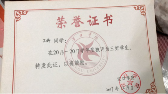 2017年、2018年连续两年被评为三好学生