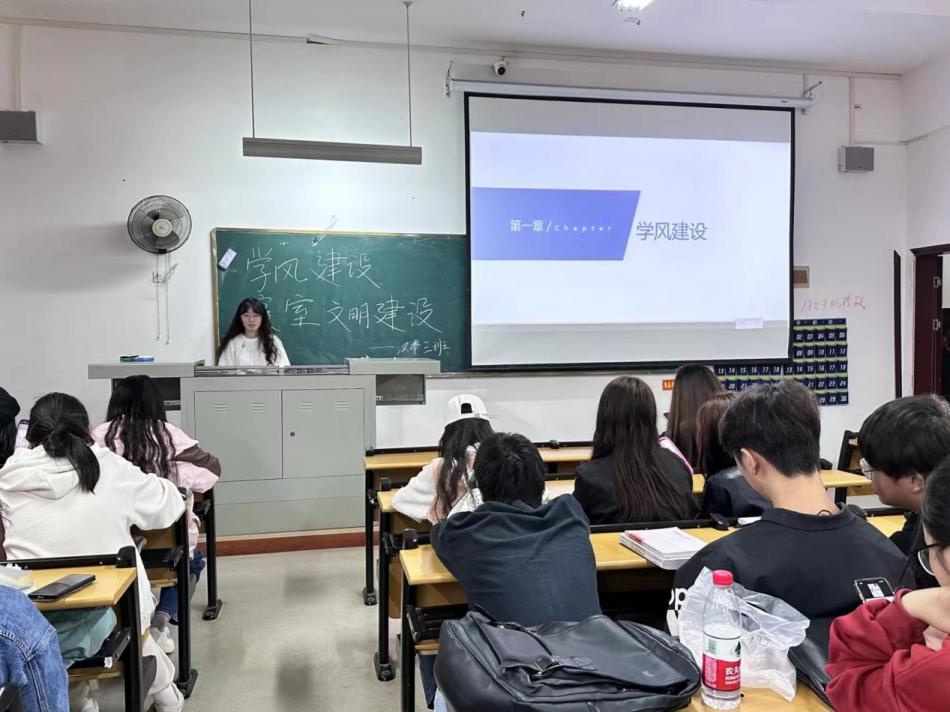 为贯彻习近平总书记关于教育的重要论述引向深入,引导优秀学子、先进文明寝室发挥榜样示范作用,塑造优良学风,营造良好的校园文化氛围,提升人才培养质量,文法学院高度重视学生“两阵地(教室和寝室)”“双建设(学风建设和文明寝室建设)”工作。10月初,文法学院召开了“两阵地”“双建设”专题工作布置会和全院各年级各班寝室长吹风会。10月以来,2022级文学专业在辅导员饶振老师的全面宣讲和精心组织下,汉语言文学和中文两个专业六个教学班率先历时两周,先后开展了“两阵地”“双建设”主题班会。