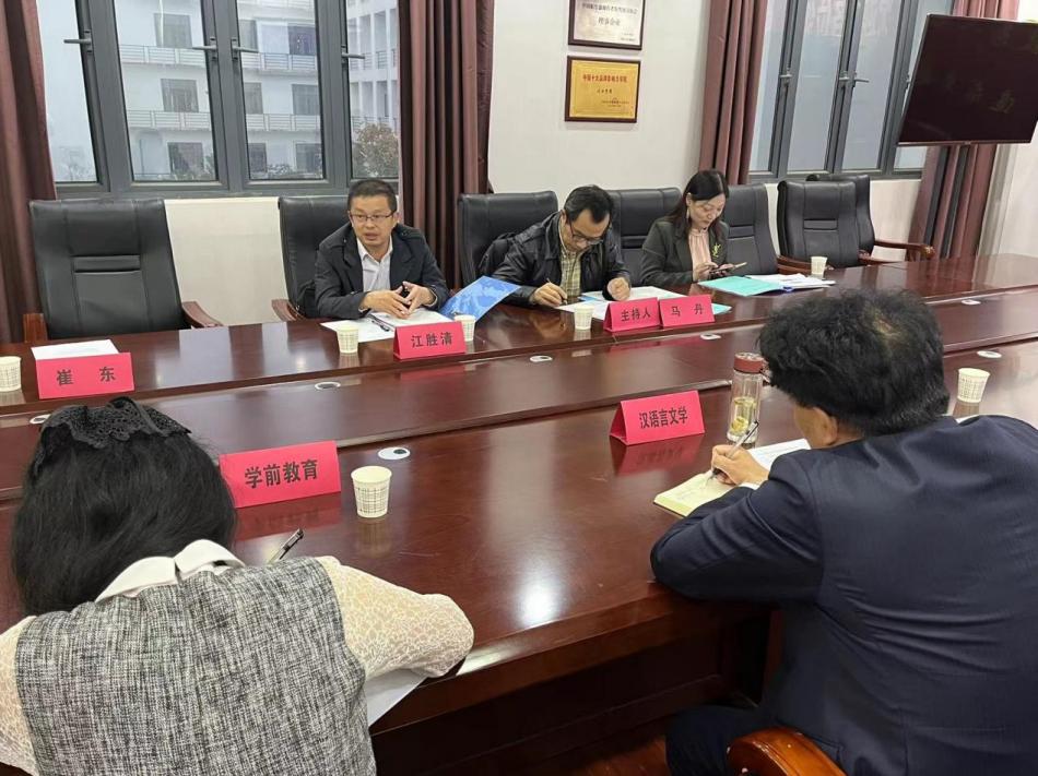 为贯彻落实教育部《关于普通高等学校本科教学评估工作的意见》精神,结合“五位一体”评估体系,进一步健全教学质量保障体系和评估机制,提高本科专业建设质量。11月9日,具有丰富专业建设、教学管理和评估工作经验的资深教授、专家对我校省级一流专业建设点、校级一流专业(师范)进行专业评估。我院汉语言文学专业接受了来自湖北工业大学马丹教授、湖北工程学院江胜清教授、江汉大学崔东教授组成的专家组的现场考察与检查。文法学院院长景遐东教授、副院长杨东、学院教师侯令琳老师出席上午的专业建设汇报会议。