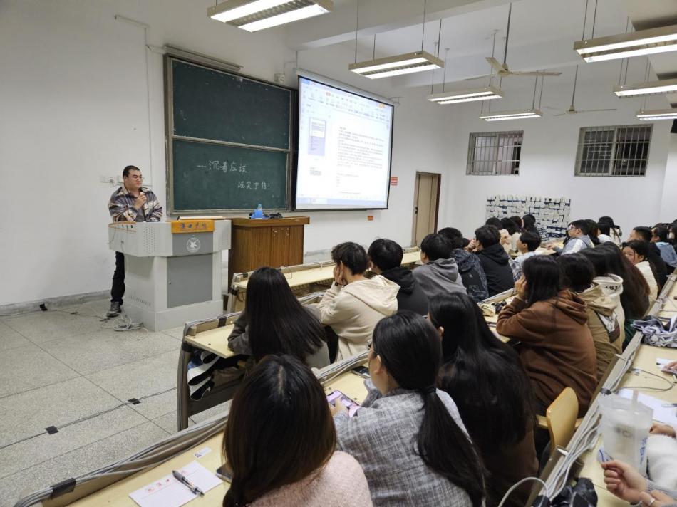 为进一步促进优良学风建设,营造良好的学习氛围,充分发挥先进典型示范引领作用,切实帮助同学们了解专升本考试考情,做好对未来的学习规划和掌握必要的备考技能。2023年11月12日18:30在一教1308教室开展文法学院专升本经验交流会,邀请了周一峰、李骐芃、肖冰焱三位升本成功的学长、学姐通过自己的亲身经历向我们分享了专升本所需注意的问题、考试内容、备考策略等,会议由2021级中文专业辅导员陆文元老师主持,2021级中文专业全体学生参加。