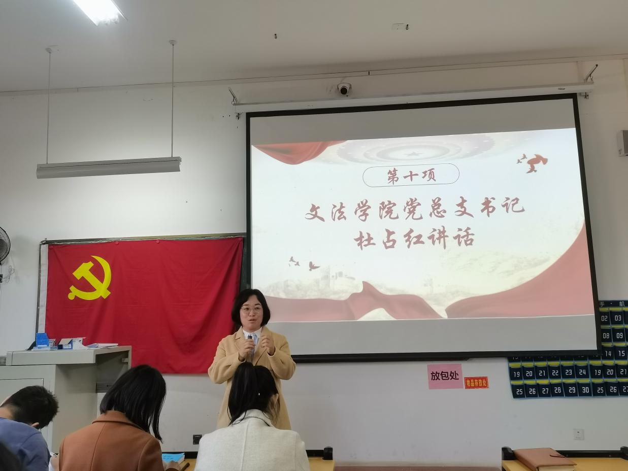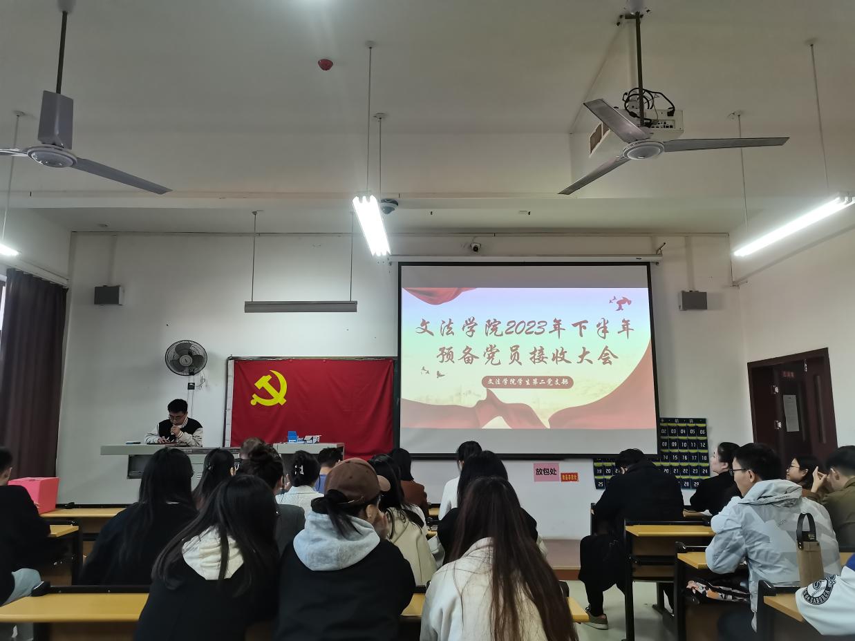 为加强院系党组织建设的工作,为基层组织发展吸收新鲜血液,注入新的活力,结合我院党员工作的实际安排,文法学院学生第二党支部于2023年11月21日中午在二教2216教室召开2023年下半年预备党员接收大会。文法学院党总支书记杜占红,文法学院学生第二党支部书记喻振刚、组织委员熊越,纪检委员晏琪琪,文法学院分团委书记陶思铭,文法学院教学秘书殷俊,文法学院辅导员欧阳嘉斌,文法学院专职教师胡越斐,文法学院专职教师颜笛以及全体党员参与此次会议,本次会议由喻振刚同志主持。