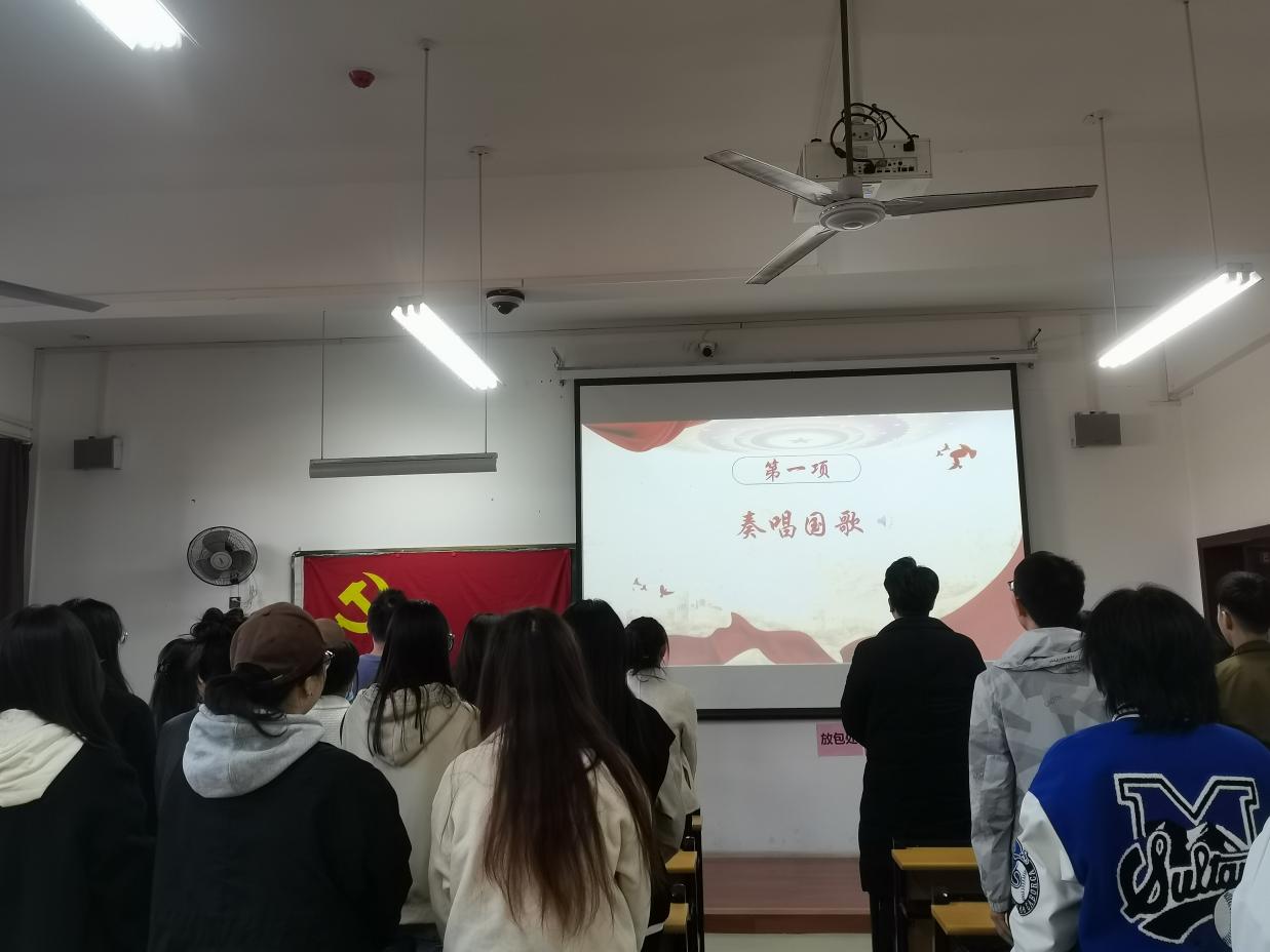 首先进行会议第一项,喻振刚同志宣布会议开始,与会成员全体起立,奏唱国歌。