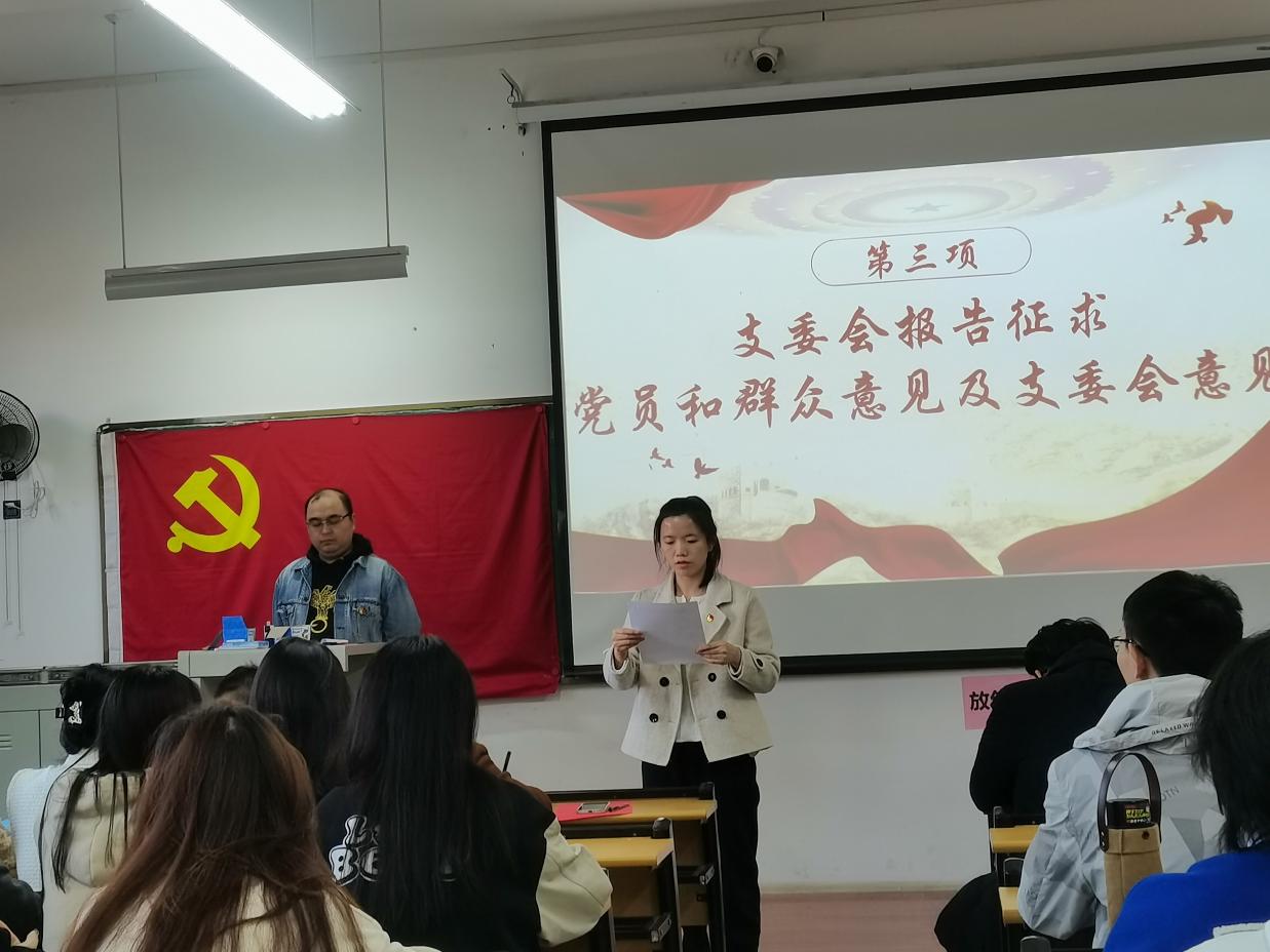 接着,熊越同志代表支委会向大会报告征求党员和群众意见及支委会意见,介绍了发展对象的培养、考察、公示和对其家庭主要成员和主要社会关系的政审情况。