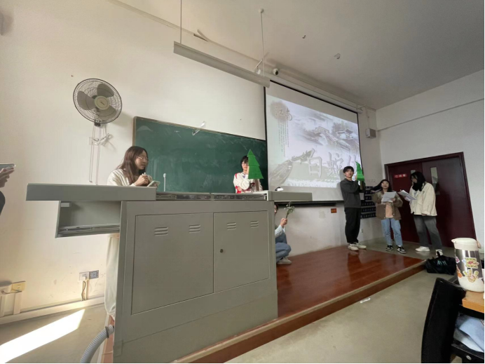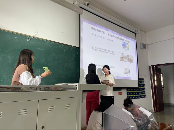 21级汉本6班的李思影同学认为:“对于文学专业的孩子来说,上台展示是一个新颖又富有挑战的体验。我们全班同学都积极主动的进行分组分工,利用课间或者周末休息的时间进行排练,在课堂上结合PPT和准备好的道具完成一场场精彩的演绎。我印象深刻的有结合了真实时代现状的改编,有结合戏剧元素的演绎,还有将整个故事变成喜剧的呈现方式。整个课堂氛围活跃轻松,能看出来每个小组的同学都非常用心准备自己的角色,让所有人都沉浸在了精彩的民间故事之中,给大家也留下了美好的民间文学课堂回忆。”