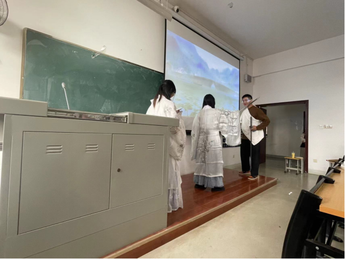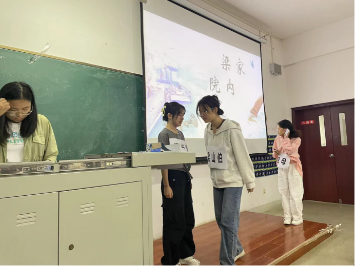 21级汉本2班的同学以约十人一组的形式,为大家进行了生动的展演,从活动结束后的反馈可以得知,普遍认为此次活动帮助大家深入了解了中国四大民间传说的价值。在表演练习中大家深入揣摩角色心理,为奉献出一场好的表演,不断进行头脑风暴,积极对传统故事进行时代性改编,为使演出效果更加契合原著,更是集思广益制作道具与布景。在前期准备的铺垫下,正式演出时演员们都拿出来十二分的精力,从一开始排练紧张得一言不发,到上台时的轻车熟路,绘声绘色地让大家觉得书本中的人物“活”了过来。通过本次的小组汇演,不仅使宝贵的文化遗产在当代得到传承和发扬,更厚植了当代大学生对中国传统民间故事影响深远的文化情怀。