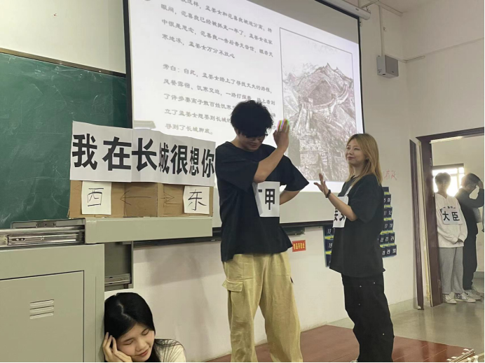 每个班依据我国民间四大经典传说进行了创意改编,分别以牛郎织女、白蛇传、梁山伯与祝英台、孟姜女哭长城的传说为蓝本,融入了个人的理解与现代的眼光,创作了生动活泼的改编剧本,并分角色进行了饰演。该活动旨在帮助同学们自主梳理我国四大传说的经典文本与发展流变,同时在演绎互动的过程中提高同学们对民间文学的兴趣,过程中也加强了班级的凝聚力。
