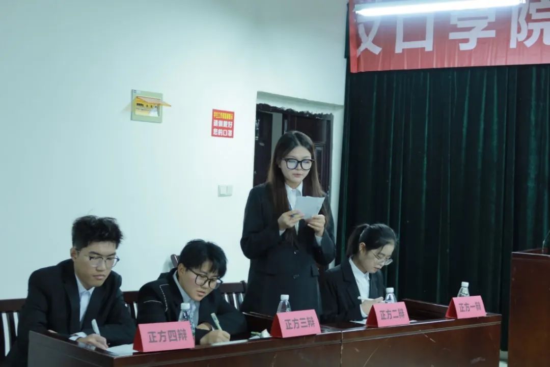 “辩是辩非辩天下公理,论古论今论人间万象。”2023年11月29日,我院于二教2504教室举行了“新生杯”辩论赛。出席本次辩论赛的嘉宾有文法学院党总支书记杜占红、分团委书记陶思铭老师,辅导员欧阳嘉斌老师、熊越老师。来自文法学院辩论队的八名辩手即将开展一场精彩的辩驳。