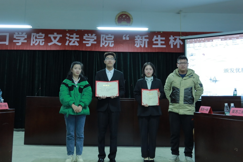 在评委们的公正评分下,比赛结果公之于众:恭喜反方获得了优胜奖,正方获得了道德风尚奖。与此同时,双方的最佳辩手也获得了嘉奖。辩论赛在全场的欢笑声中落下了帷幕,本届“新生杯”辩论赛圆满结束。