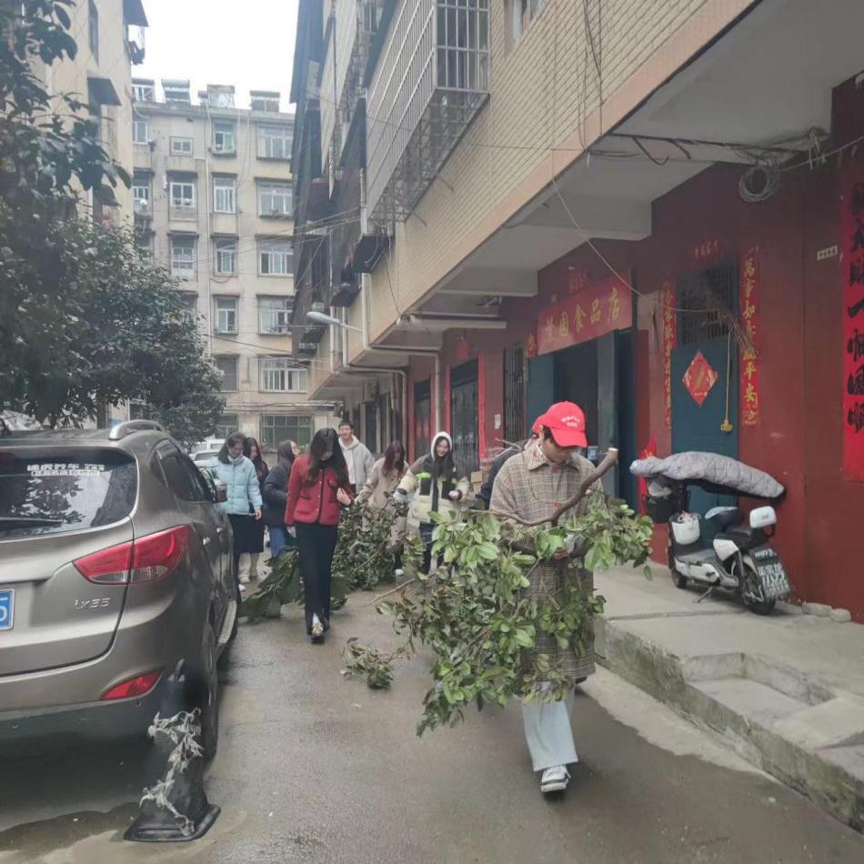 上午8时许,全体成员到达新北路社区。为方便志愿服务开展,在社区工作人员的安排下,将大家分为两队,分别负责清理社区范围内因雨雪天气引起的树枝断裂、碎石堆积、水沟淤泥堵塞等问题。