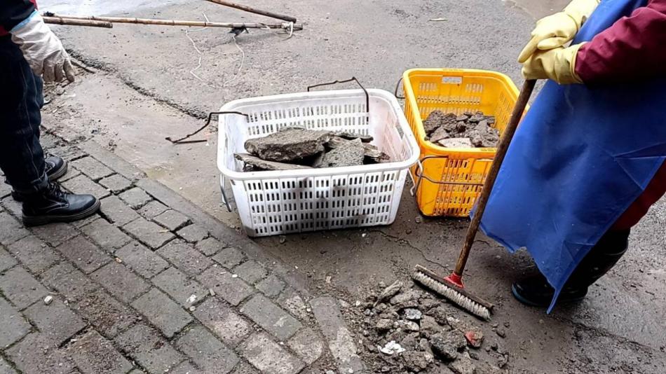 同时,临街开的餐馆后厨与居民过道连在一起,油烟污渍和厨余垃圾导致居民过道泥泞不堪。我们在网格员同志的带领下,扫帚扫、铁锨铲、人工手捡齐上阵,碰到难以铲除的污渍,不怕难、不怕脏,想尽办法进行清理,换工具进行铲除。在志愿活动过程中也得到了群众们的一致好评。