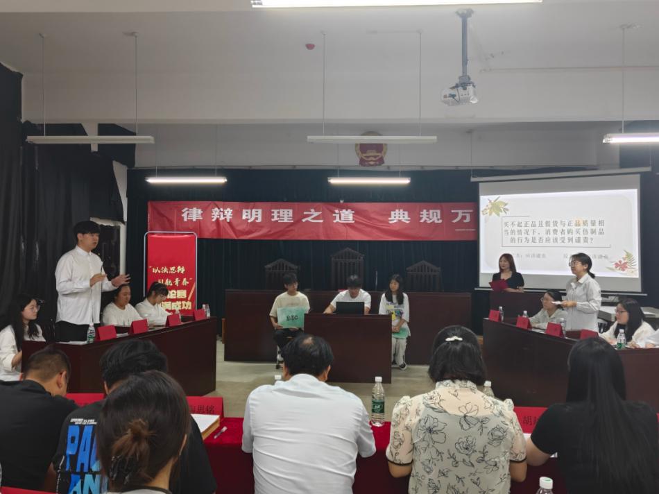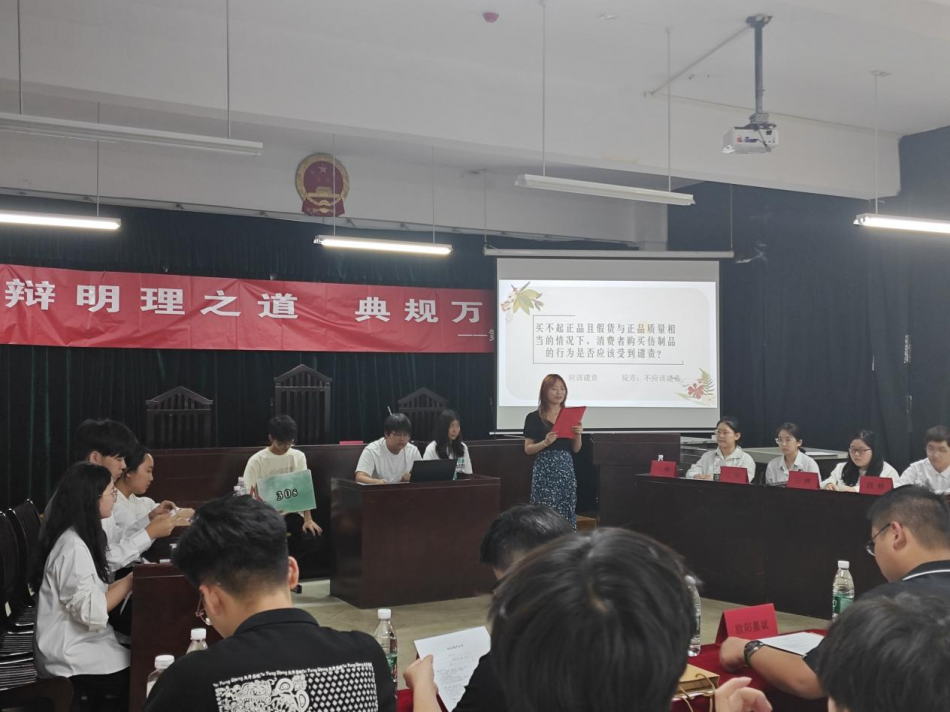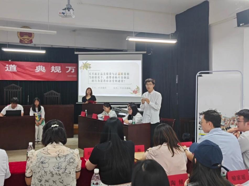 比赛开始前,由正反方进行自我介绍,宣读比赛规则。本次比赛的辩题为“买不起正品且假货与正品质量相当的情况下,消费者购买仿制品的行为是否应该受到谴责?”