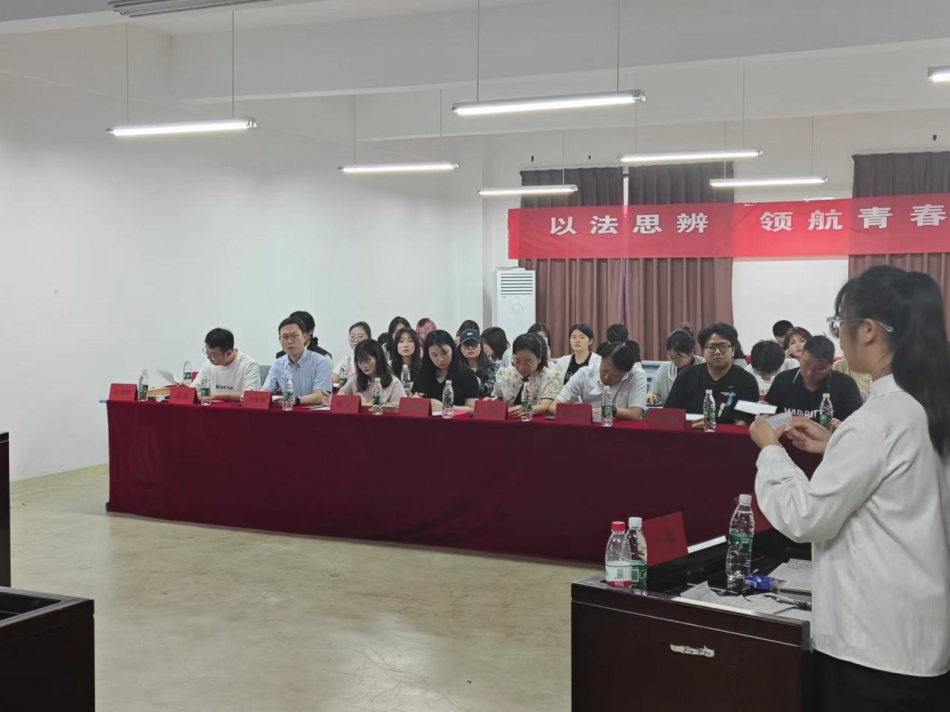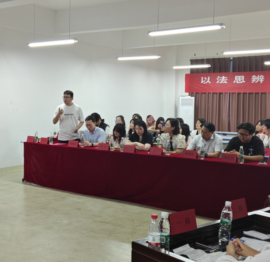 为引导我校学生走进法律,崇尚法治。提高学子的逻辑思考能力、语言表达和语言组织能力,培养团队协作的能力与意识。5月29日晚六点半,由共青团文法学院委员会主办,法学与社会协会承办的“以法思辨,领航青春”辩论赛于二教2504教室正式开赛。文法学院院长景遐东教授、党总支书记杜占红、法学系主任胡越斐老师、文法学院分团委书记陶思铭老师、法学专职教师甄梅老师、吴忌老师、刘作沛老师、中南瑞达法考法硕教育总监潘凯老师。文法学院辅导员陆文元、邢皓源、欧阳嘉斌老师、校学生会主席团、文法学院团学生代表出席活动并担任评委。