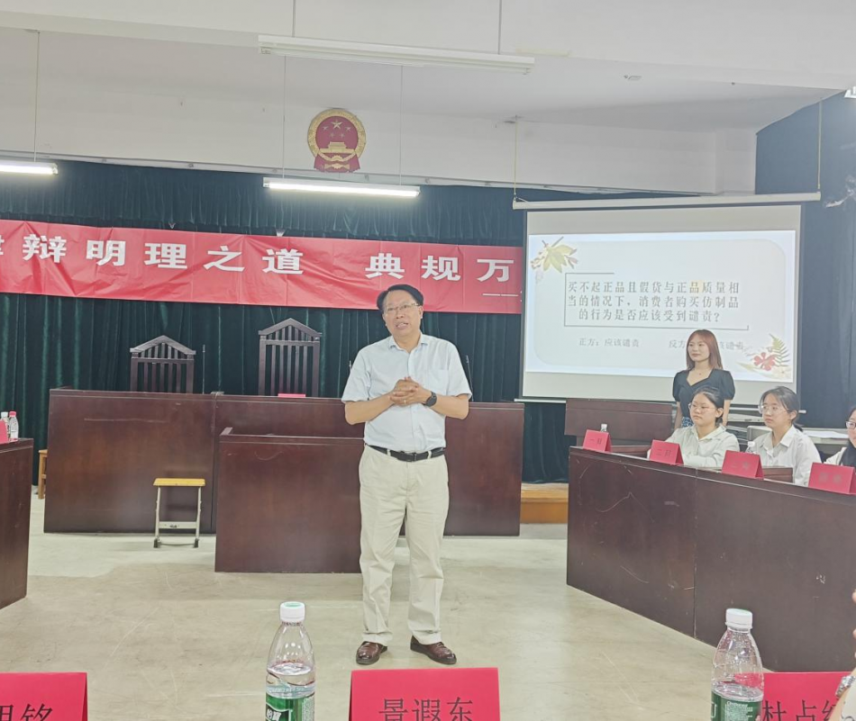 吴忌老师对本次比赛进行点评,他认为,这个辩题对于正方来说可能要容易一点,因为有很多可以支撑和引用的材料,比如《知识产权法》《消费者权益保护法》以及市场监督管理局的职能等,所以,在此不对正方的辩论提出意见。