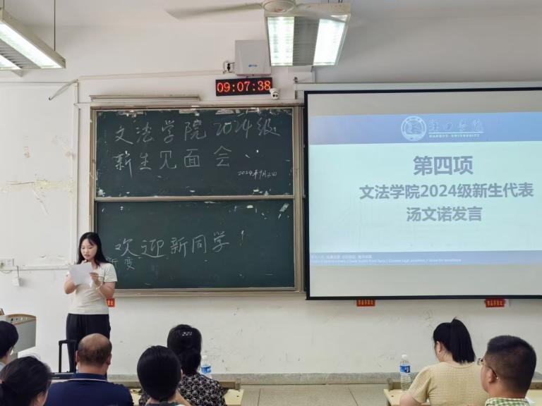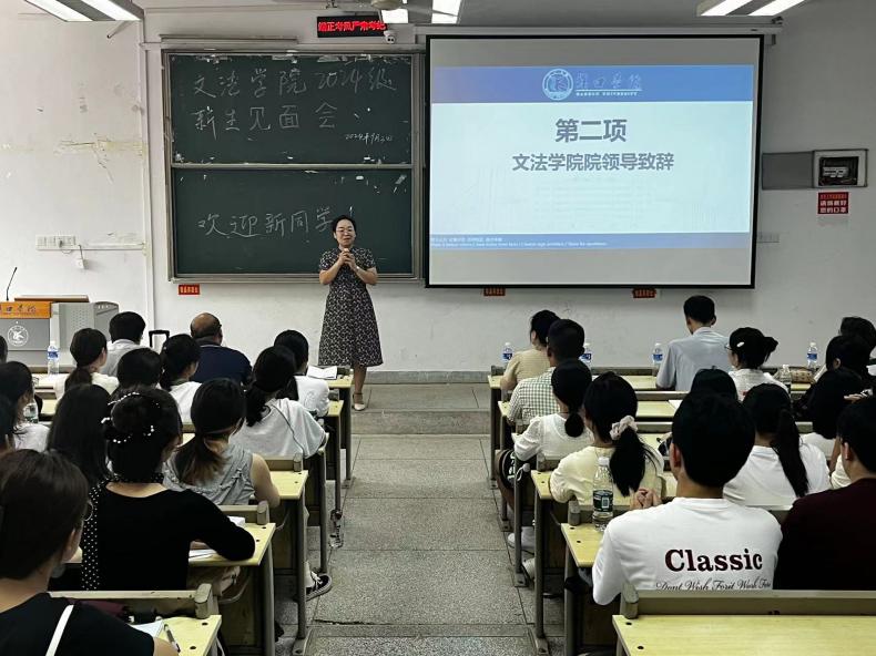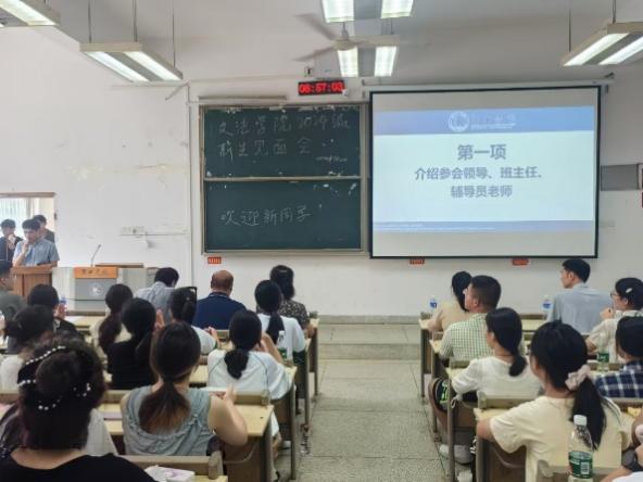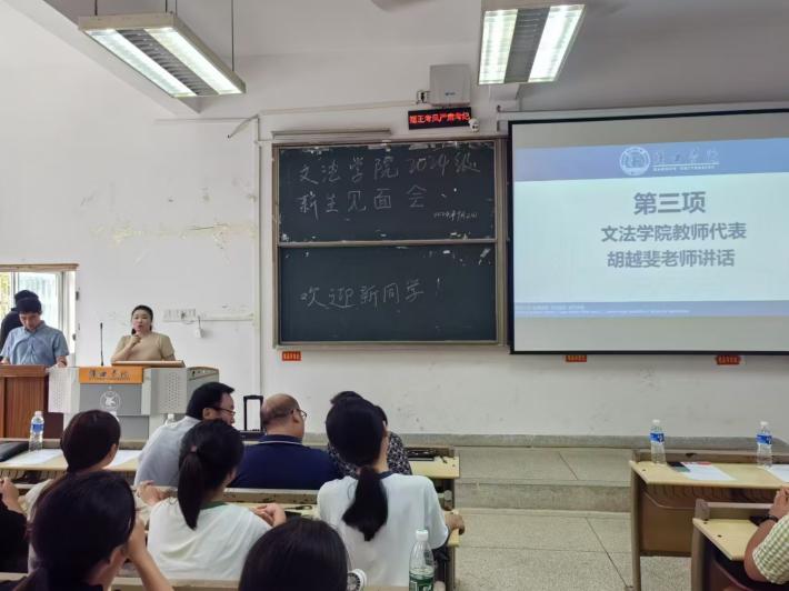 会议伊始,由主持人陆文元老师介绍到场嘉宾,各位院领导及新生班主任向同学们表示了热烈的欢迎,欢迎新同学们加入文法学院大家庭!