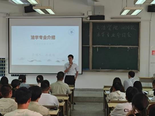 法学专业介绍会在1102教室展开,首先,法学1班班主任李舒老师于法学2班班主任陈松然老师分别为新同学们做了自我介绍。紧接着,法学系主任胡越斐老师就人才培养方案进行讲解,简单介绍了本专业相关证件的考试时间与各类比赛的举行时间,要求同学们尽早做好规划和准备。最后,法学沈建铭老师对法学专业进行详细介绍,并为同学们进行了答疑解惑,在同学与老师的一问一答中,新同学们逐渐减少了对未知的迷茫,大大增强了学习的信心。
