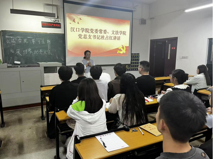 根据党委党校第十五期发展对象培训班部署要求,提升发展对象的党性修养,更进一步的端正入党动机,文法学院党总支在10月17日中午在二教2218教室召开第十五期发展对象培训班课前动员大会。汉口学院党委常委、文法学院党总支书记杜占红,文法学院党总支组织员、学生第一党支部书记邢皓源,学生第二党支部书记欧阳嘉斌出席大会,本次会议由学生助理蒋彤主持。