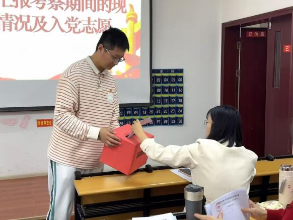 随后,发展对象蒋彤、叶霞等13名同志分别向党组织汇报了自己对党的认识和感悟、入党动机、个人情况、个人对未来的展望以及个人在思想、学习、生活、工作上的情况,并表明牢记入党初心,不忘使命的决心。与会党员就发展对象能否入党发表意见。经过充分讨论,大会对预备党员接收事宜进行了无记名投票表决,一致同意蒋彤、叶霞等13名同志接收为中共预备党员。