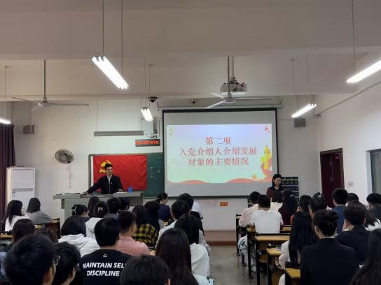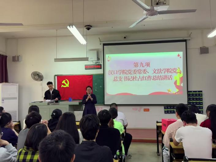 为进一步加强院系党组织建设的工作,落实发展党员工作计划,11月14日,文法学院学生党支部于二教2218教室召开讨论2024下半年预备党员接收大会。汉口学院党委常委、文法学院党总支书记杜占红,文法学院党总支组织员、学生第一党支部书记邢皓源,纪检委员饶振,文法学院学生第二党支部书记欧阳嘉斌,组织委员熊越,入党介绍人赵丹、殷俊等同志参加此次会议。本次会议由邢皓源书记主持。