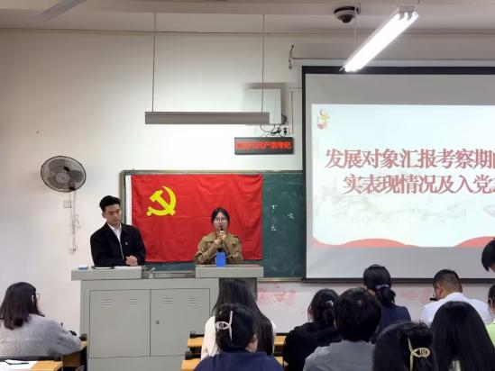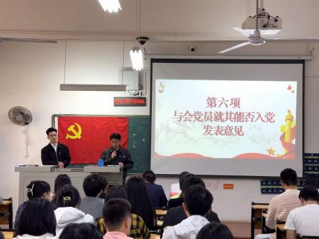 紧接着,欧阳嘉斌、饶振两位同志代表支委会向大会报告并征求党员和群众意见以及支委会意见,他们表示蒋彤等13名同志政治立场坚定,学习刻苦、勤奋上进、关心集体、思想觉悟较高、乐于助人、甘于奉献。