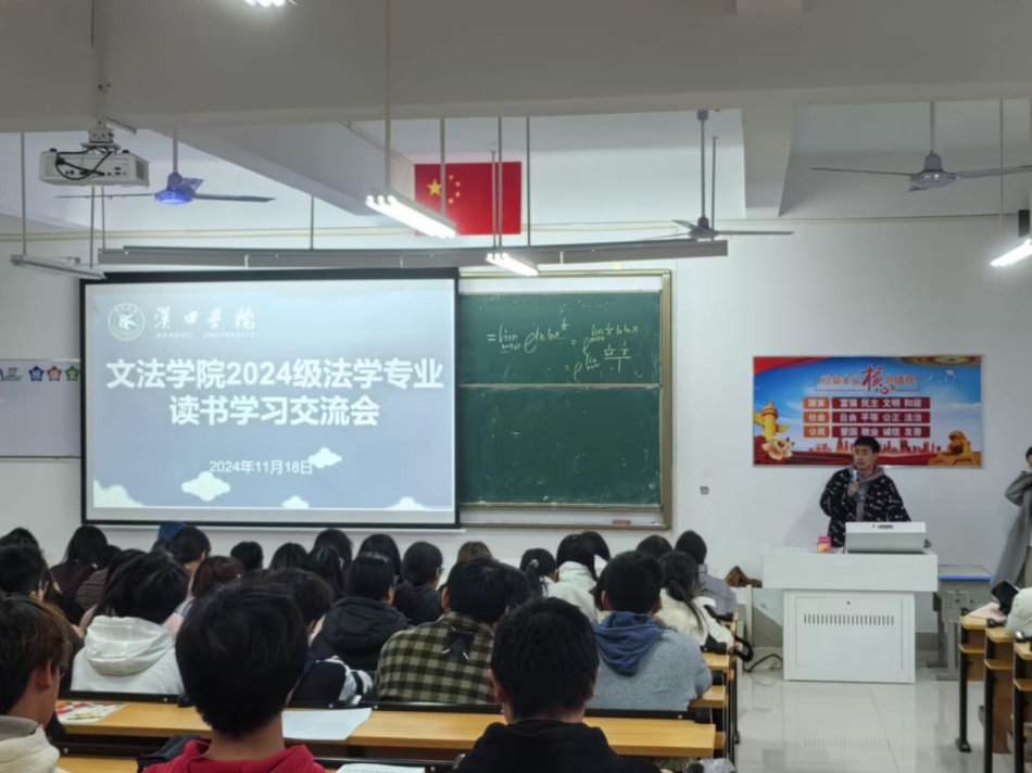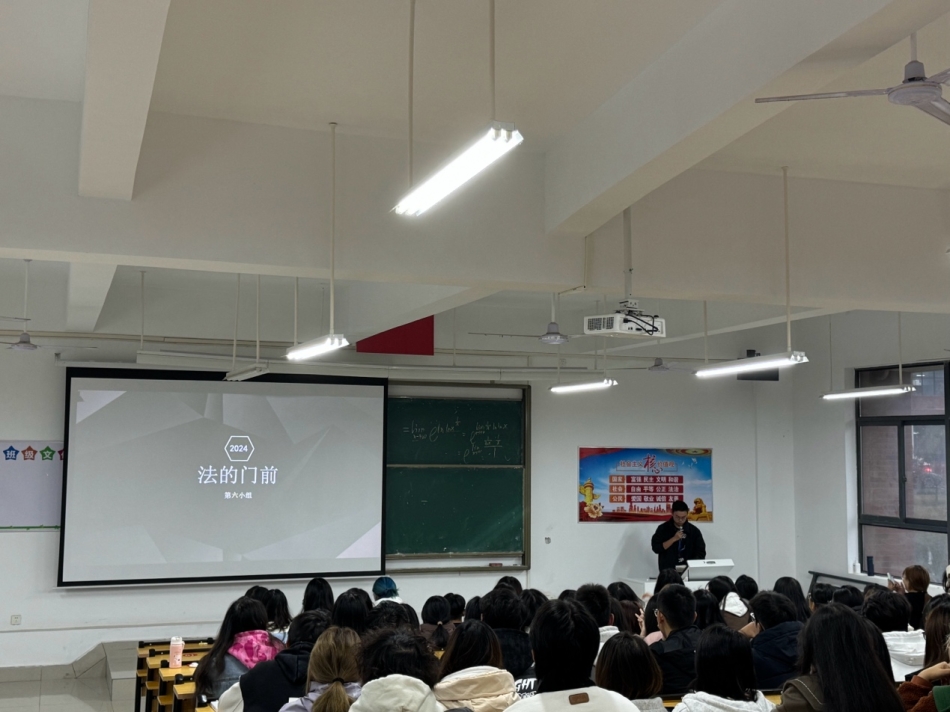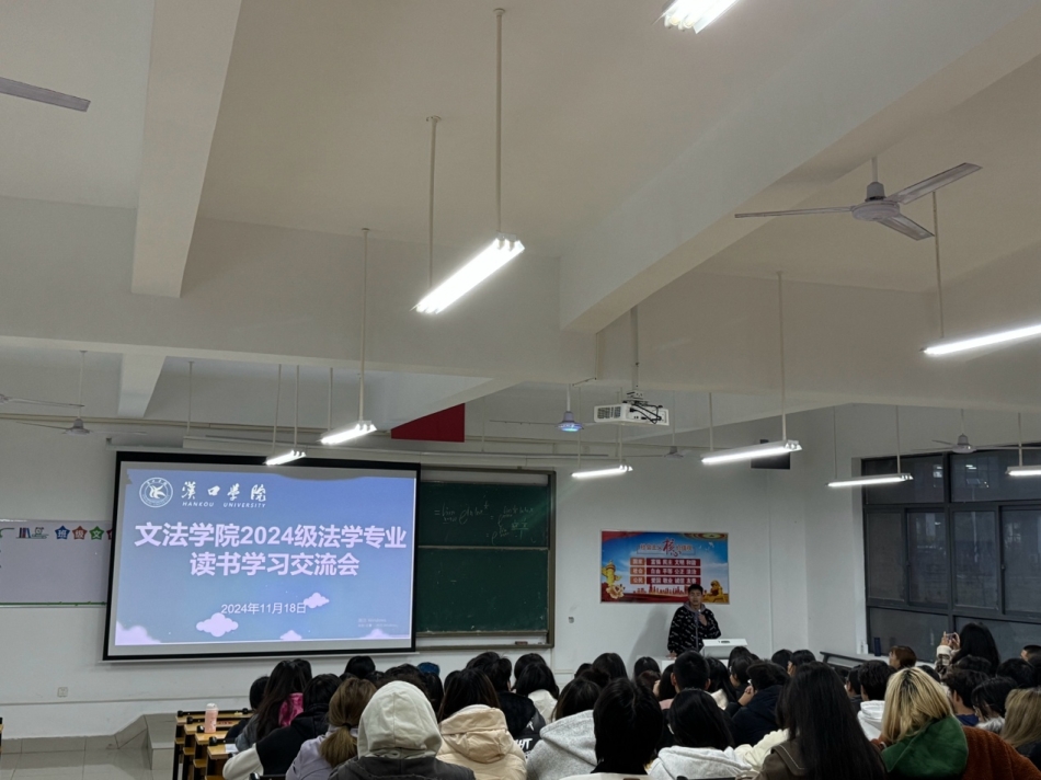 为引导2024级法学专业学生紧跟时代步伐,深入学习法学经典,树立“奉法者强,则国强;奉法者弱,则国弱”的观念。我院于11月18日下午,在京山校区B-204教室开展了2024级法学专业读书学习交流会。本次会议由学生辅导员陆文元老师主持,2024级法学专业全体同学参加会议。