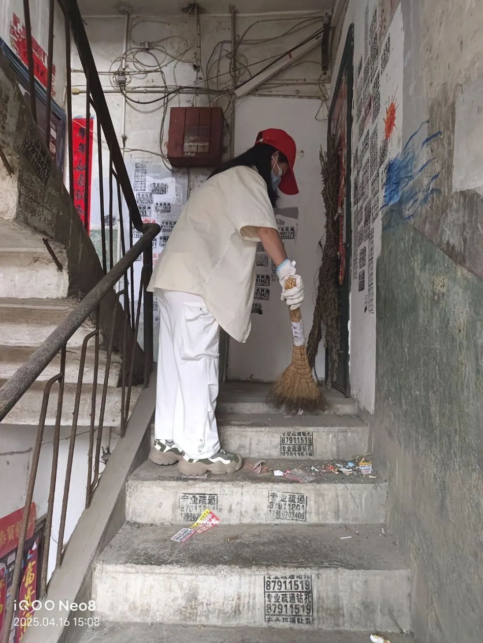 活动中,志愿者们还主动与居民沟通,宣传环保理念,许多社区居民也加入到清洁家园的队伍里面。社区居民张阿姨感慨道:“这些年轻人不怕脏不怕累,帮我们清理了多年的‘顽疾’,楼道敞亮了,院子也整洁多了!”社区工作人员也纷纷表示:“我们文法学院学生的到来不仅改善了环境,更传递了志愿精神,深化我们的校社合作,共同推进基层治理。