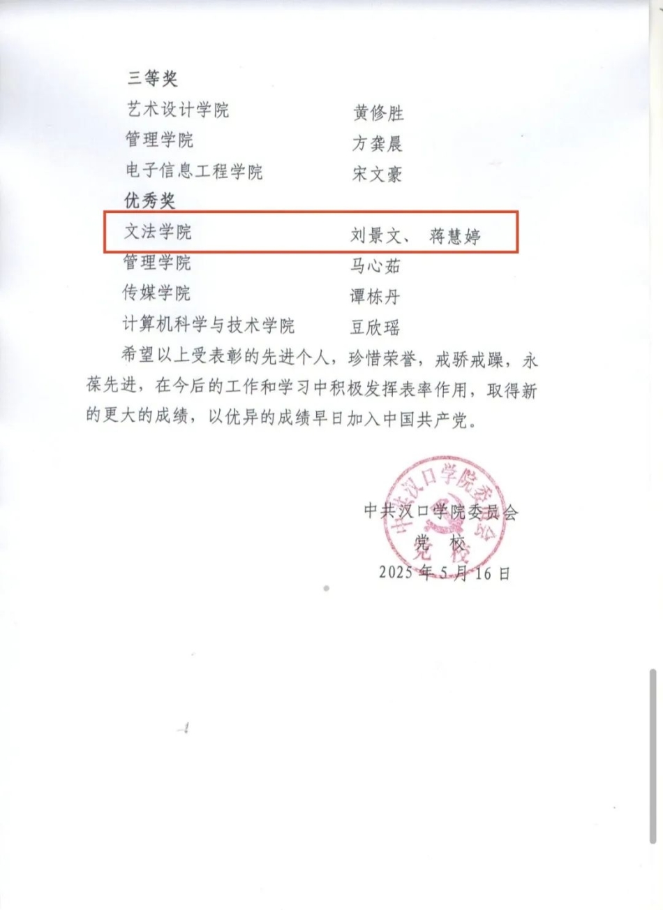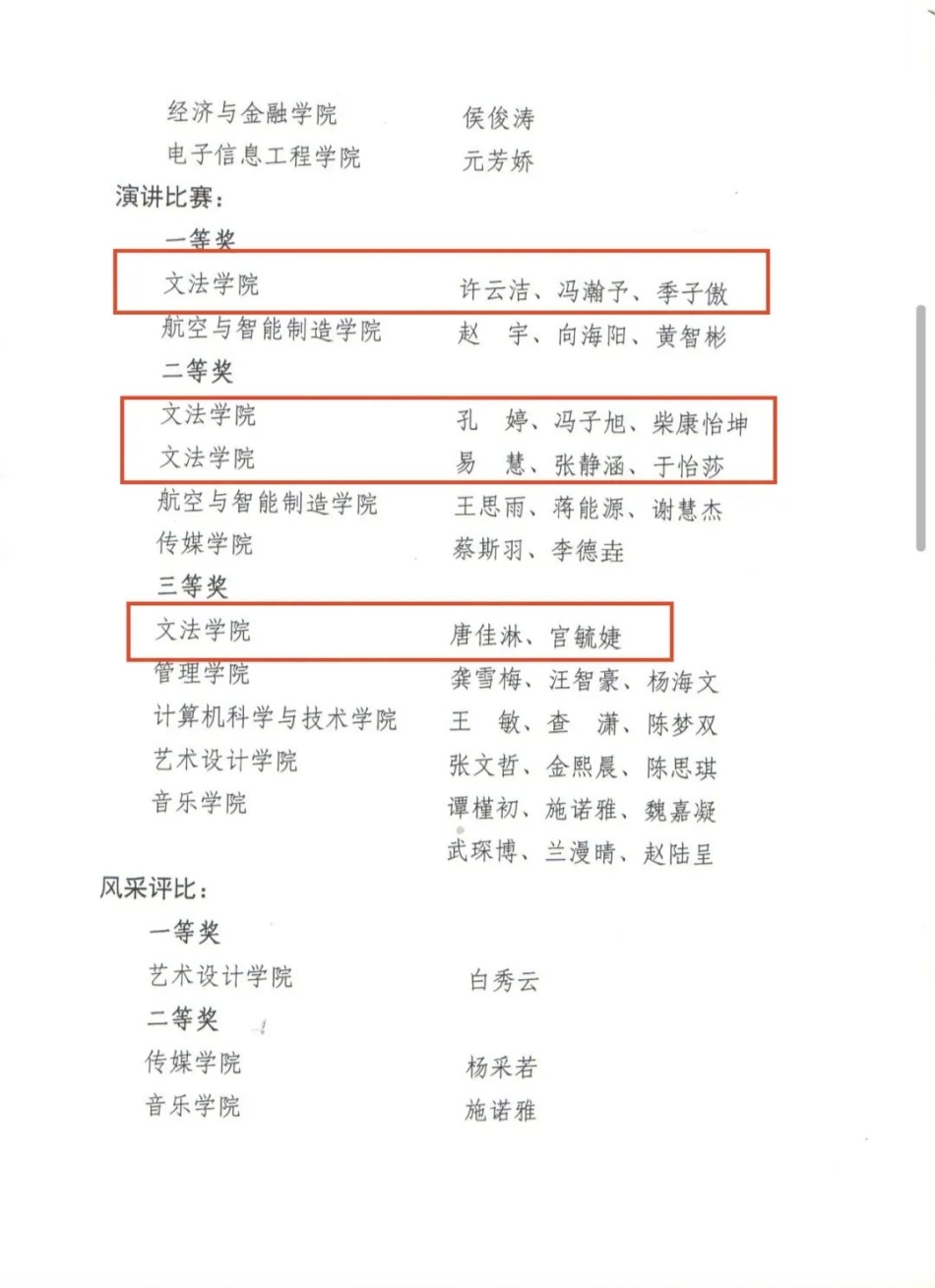 在此次表彰名单中,文法学院学子以卓越表现与不懈努力脱颖而出,交出了一份亮眼的答卷。刘景文等六名同学凭借突出的综合素养,荣获“优秀学员”称号;在主题演讲比赛中,学院六组参赛队伍全员载誉而归,包揽一、二、三等奖,实现奖项“大满贯”。此外,在风采评比环节,文法学子凭借独特的创意与精彩展示,斩获优秀奖。这些优异成绩的背后,凝结着同学们无数日夜的刻苦钻研与精心准备,离不开老师们的悉心指导与全程关怀,更是学院长期坚持立德树人教育理念、深耕人才培养结出的硕果。这份荣誉不仅是对过往努力的肯定,也激励着全体文法学子继续奋勇向前,书写更加辉煌的篇章。