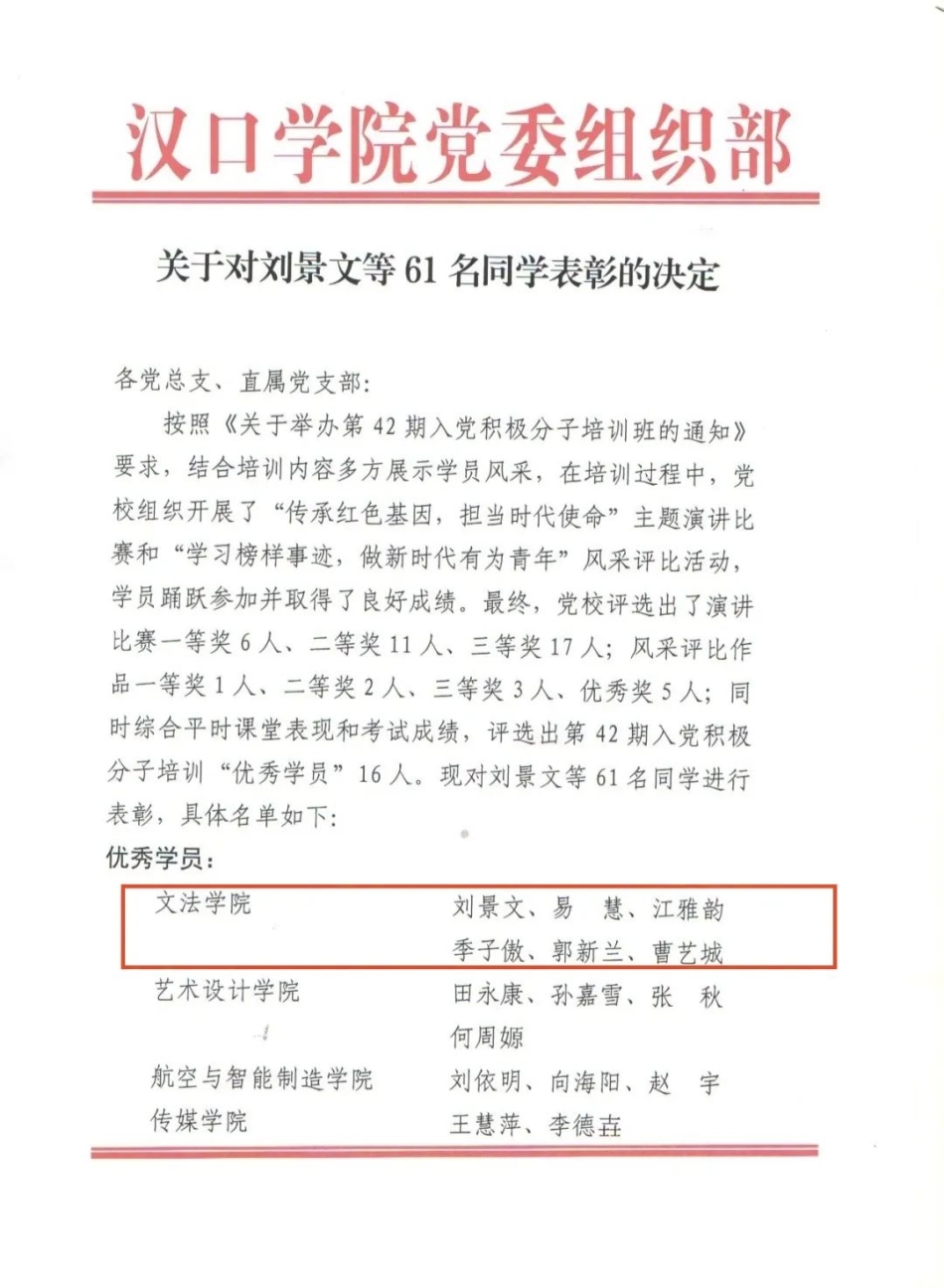 【喜报】我院学子在第42期入党积极分子培训班中取得优秀成绩