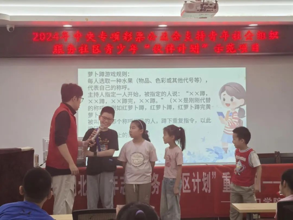 接下来的奖励问答与互动游戏将活动推向高潮。“放学时发现是不认识的陌生人接我们要怎么做?”“爸爸妈妈能不能偷看小朋友的日记?”等贴合青少年日常生活的问题引起孩子们热烈抢答。随后开展的“击鼓传花”才艺展示与“萝卜蹲”游戏寓教于乐,孩子们热情展示自己的才艺,现场气氛热烈,大家在游戏中放松身心,增进彼此之间的友谊,进一步激发了青少年学习法律知识的积极性。