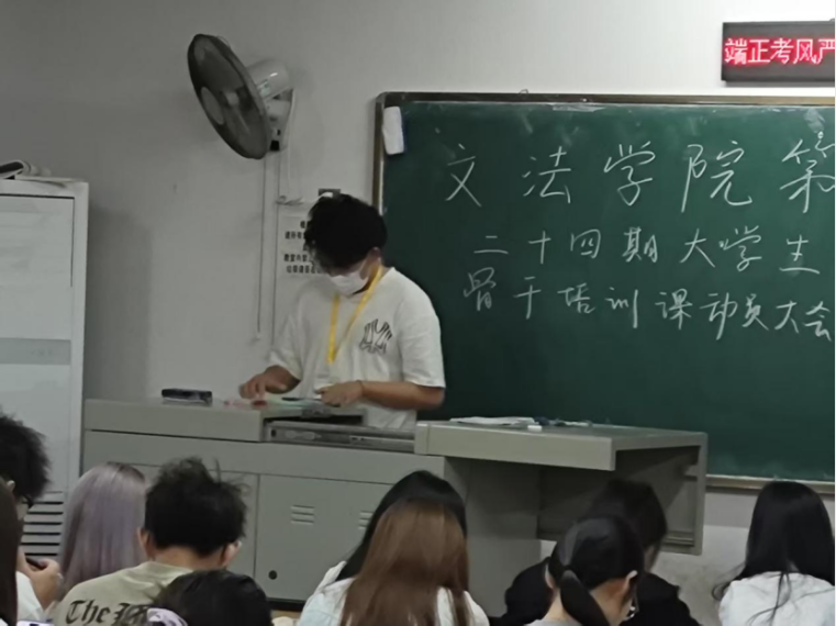 为深入贯彻习近平新时代中国特色社会主义思想,持续加强团组织自身建设,引导青年坚定不移听党话、跟党走,为造就一批用马克思主义中国化最新成果武装的马克思主义者,我院于2025年5月22日在2213教室召开了第二十四期大学生骨干培训动员大会。本次会议由文法学院团委组织部副部长季子傲主持,第二十四期大学生骨干培训学员以及文法学院团委组织部全体部员参加本次会议。