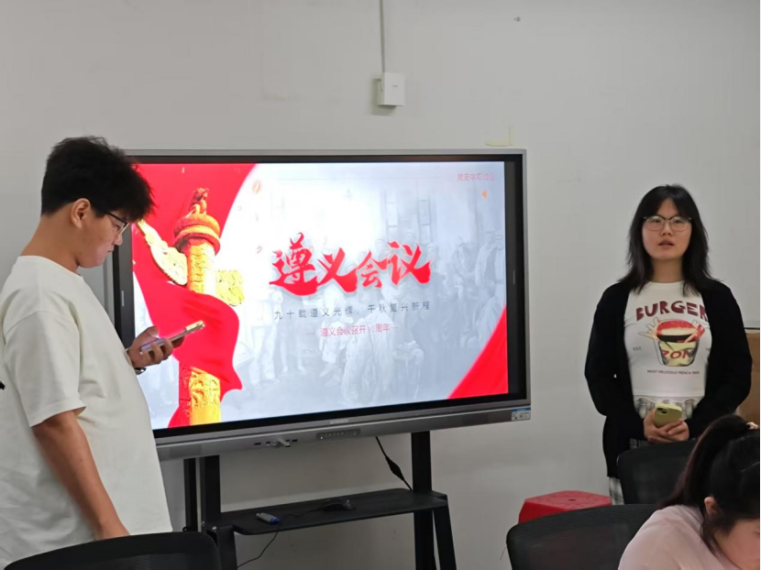 最后,学员们在0201办公室进行了以主题为“九十载遵义光辉,千秋复兴新程”的演讲进行了试讲,分团委学生副书记许文彬和组织部部长冯晓波进行了点评。试讲同学结合自身实践,试讲同学结合自身实践,从不同角度生动诠释了遵义会议那波澜壮阔的历史意义以及对当代复兴征程的深远启示。有的同学从革命先辈在遵义会议中坚定信念、勇于纠错的精神出发,联系自己在学习道路上遇到困难时如何汲取这种力量,克服重重阻碍,实现自我突破;有的同学则以遵义会议展现出的团结协作精神为切入点,分享在参与社团活动或团队项目时,如何发挥团队成员各自优势,共同达成目标,深刻体会到众人拾柴火焰高的道理。