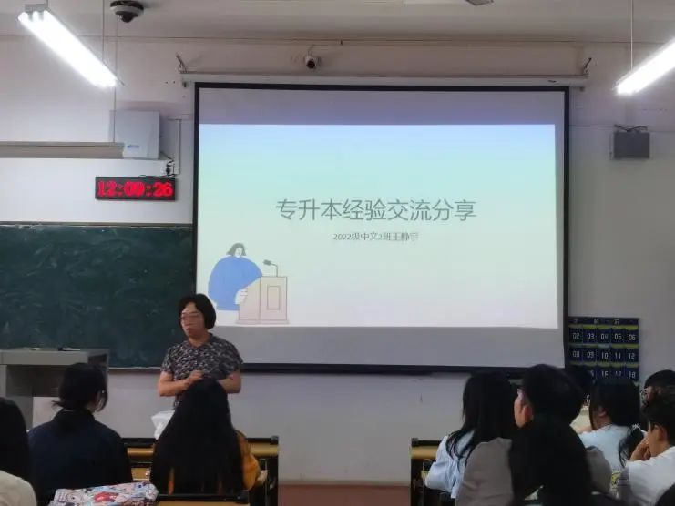 5月27日,文法学院在2216教室举办专升本备考经验分享会,文法学院党总支书记杜占红出席,23级中文班全体学生参会。