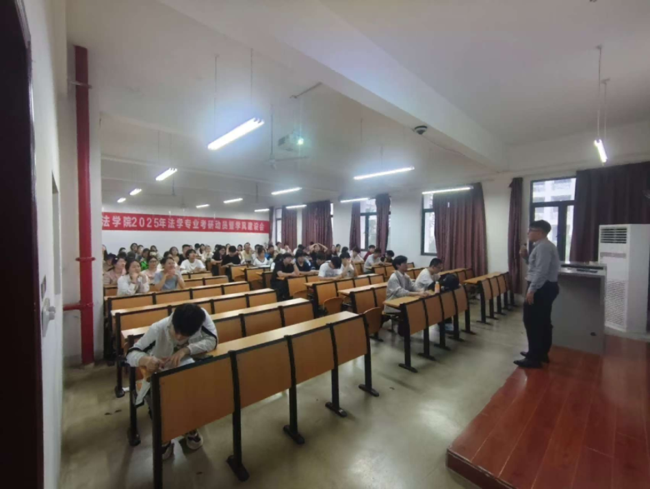 为进一步推动学风建设,充分调动学生参加法考与考研的积极性,营造浓厚备考氛围,为学院毕业生高质量就业持续赋能,文法学院于6月8日在2317教室举办2025年法学专业学风建设暨考研动员会。