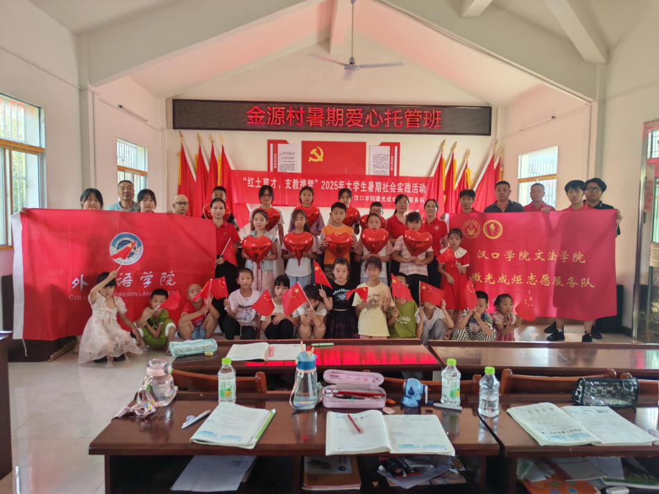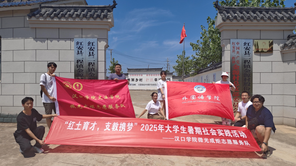 为弘扬志愿者精神,提升学生综合素养,应汉口学院扶贫工作队邀请,由文法学院与外国语学院联合组建的“汉口学院微光成炬志愿服务队”于2025年7月14日赴红安县二程镇金源村,开展为期两周的“暑假学堂”公益支教活动。